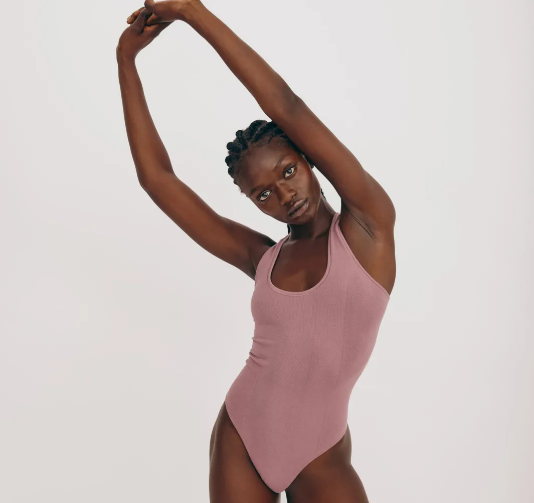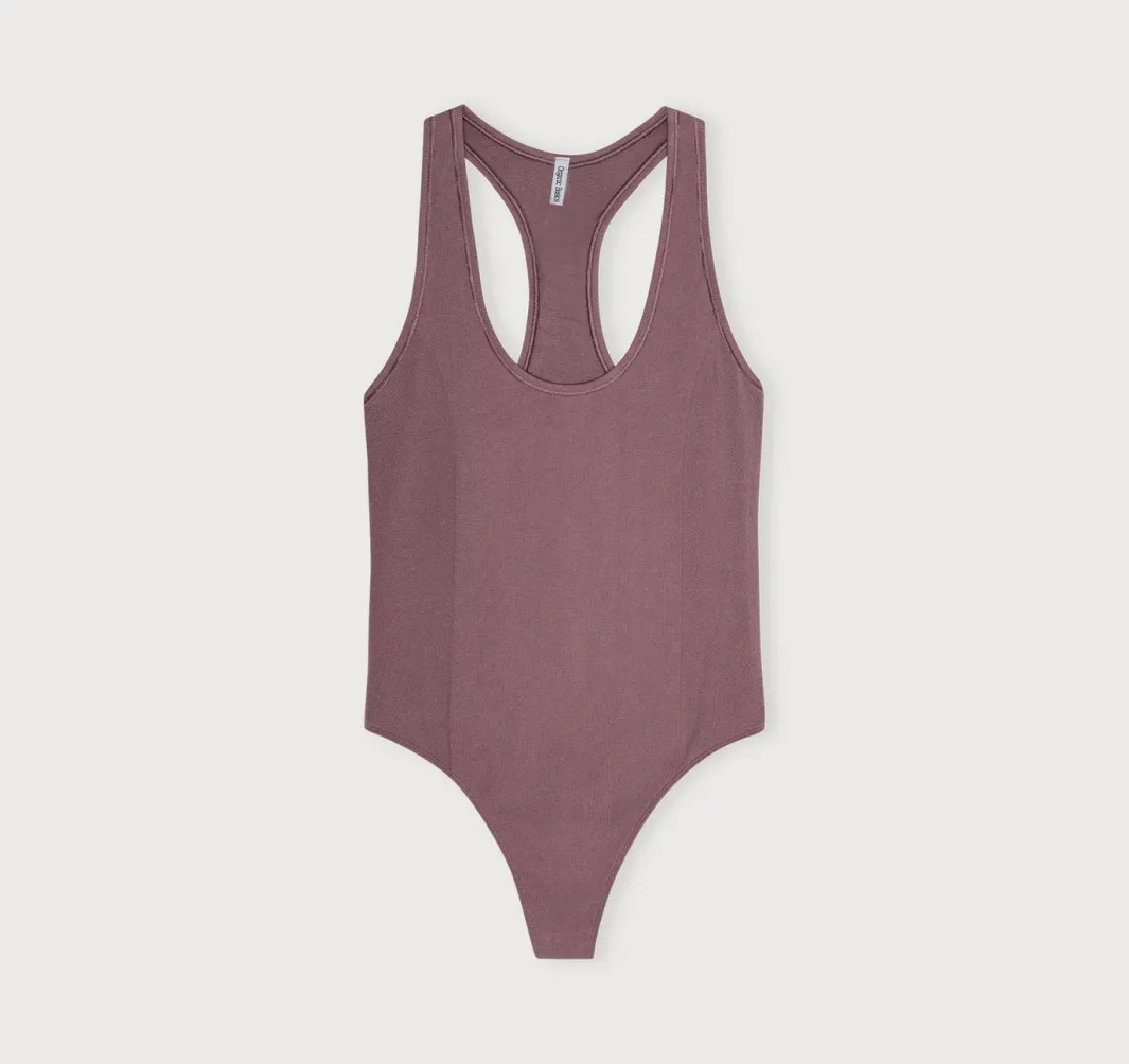 With a scoop neckline and racer back, this soft and plush bodysuit hugs your body just right. Made with a sustainable viscose blend, this thick and stretchy fabric takes lounging to the next level.