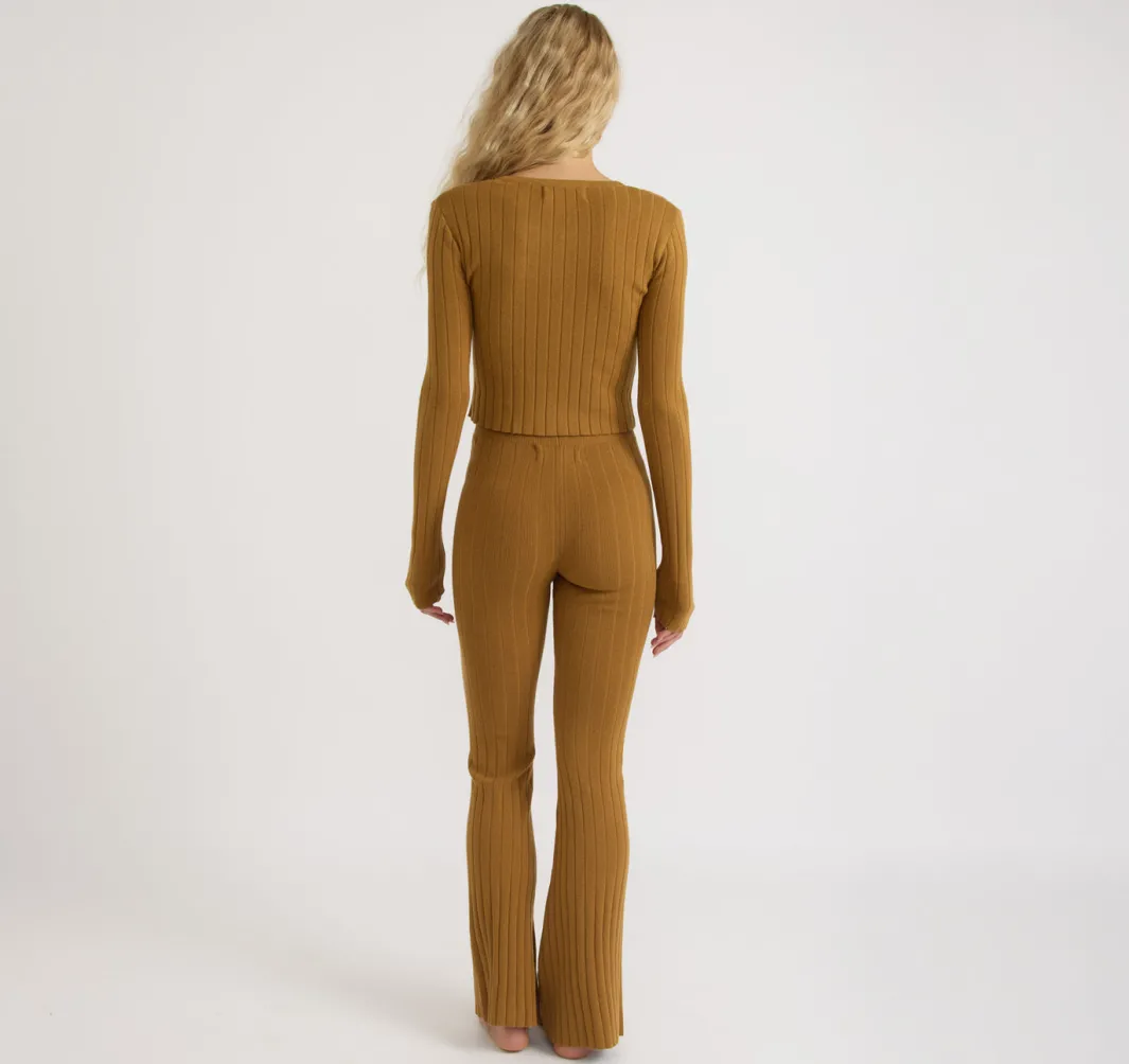 Soft Knit Rib High-Rise Flare Pants70’s inspired flare pants made with organic cotton and recycled nylon for a buttery-s…
