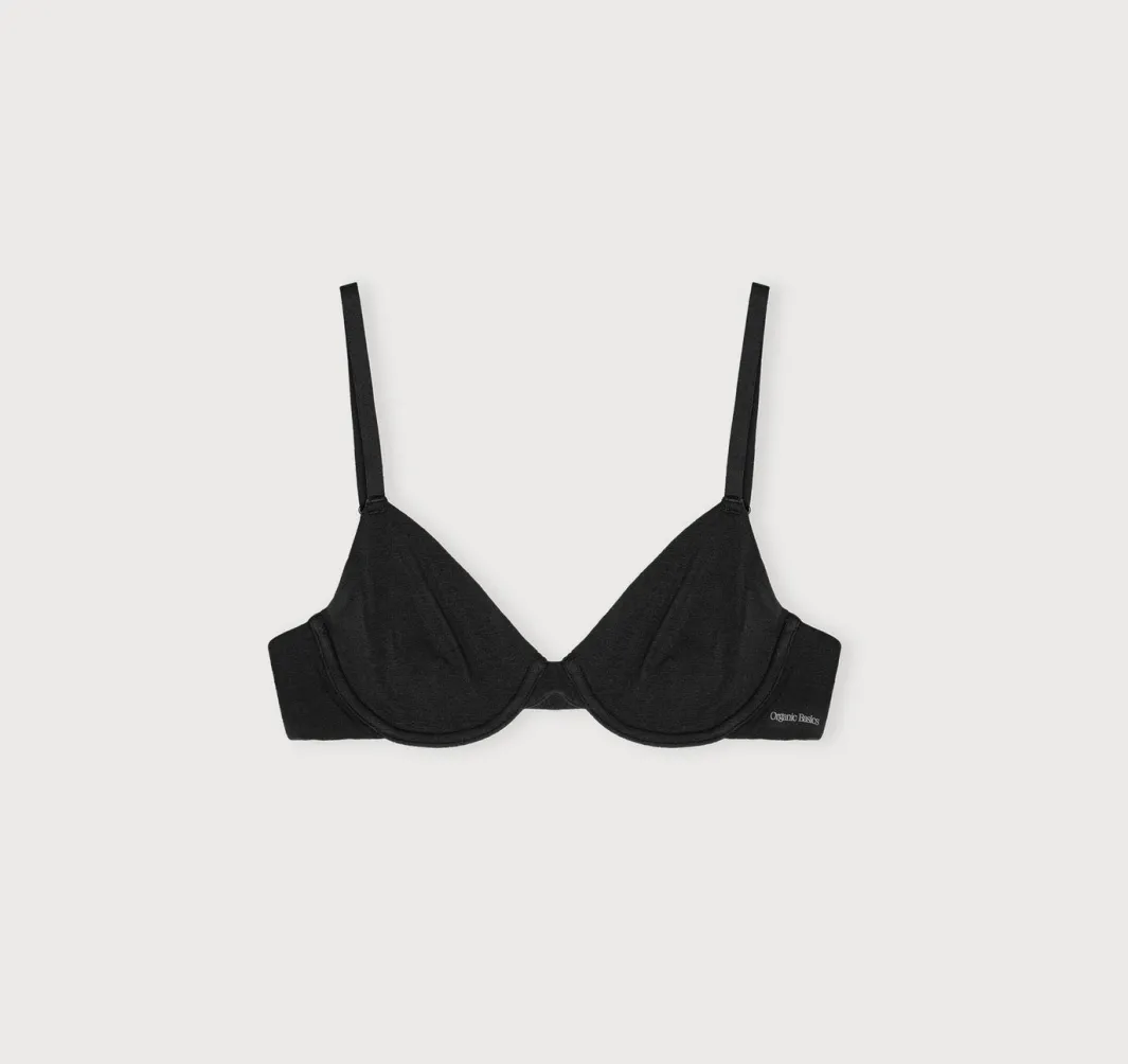 The search for a sustainable bra is over. Support meets comfort in this unlined wire bra made with buttery-soft organic cotton. Made to enhance a natural-looking cleavage while still being comfortable for everyday wear. Features adjustable straps that can be customized to be worn straight or crossed, and hook-an-eye closure in the back.