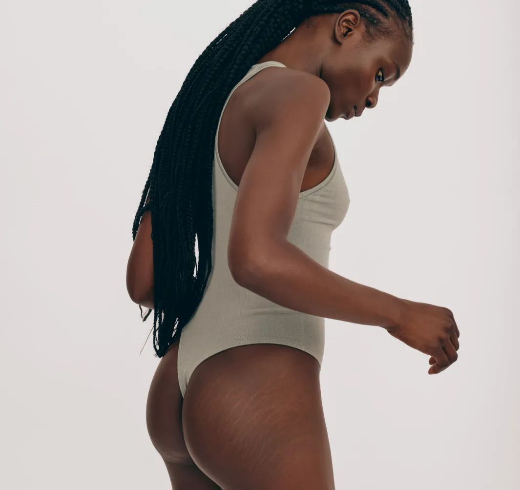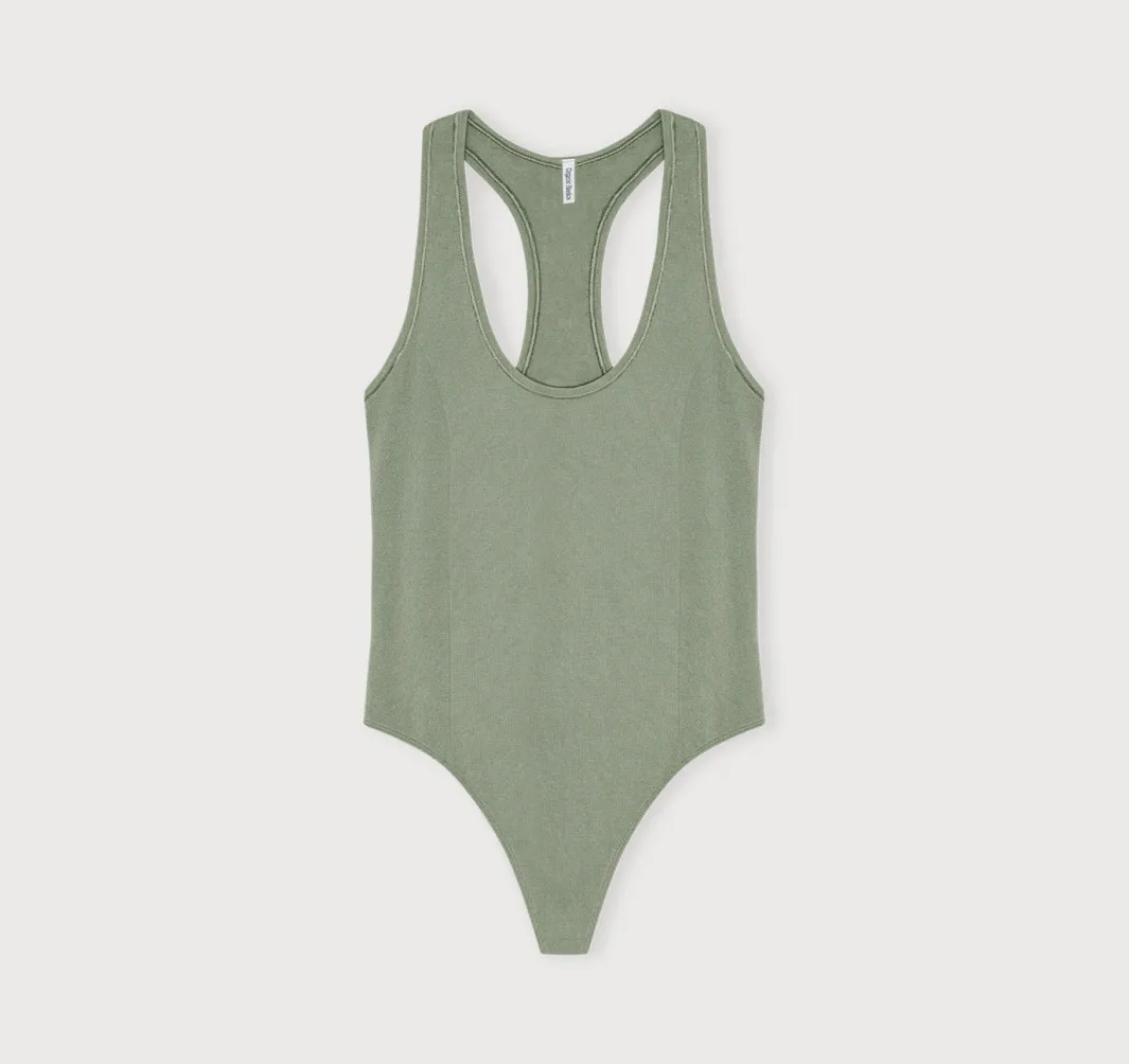 With a scoop neckline and racer back, this soft and plush bodysuit hugs your body just right. Made with a sustainable viscose blend, this thick and stretchy fabric takes lounging to the next level.