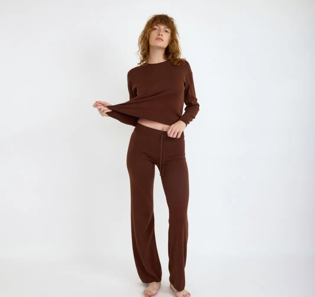 These ultra-soft knitted pants made with organic cotton and recycled polyester will keep you comfy all through cozy season.