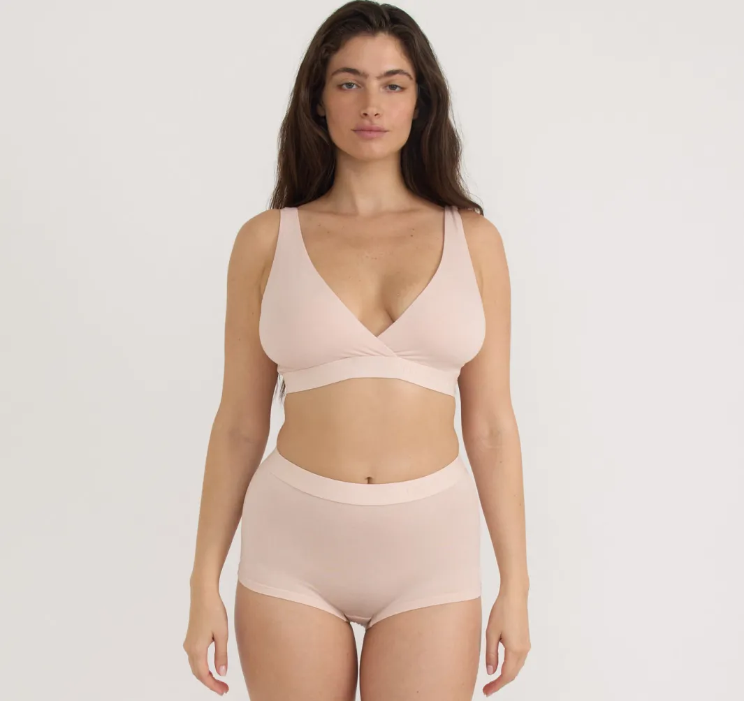 Supportive, soft and sustainable – this airy bra is as comfortable as it is cute. Made in a lightweight material made with TENCELâ„¢ Lyocell fibers. Features a soft elastic underband, and a cross-over design for added support. So comfortable you’ll forget you’re wearing it.