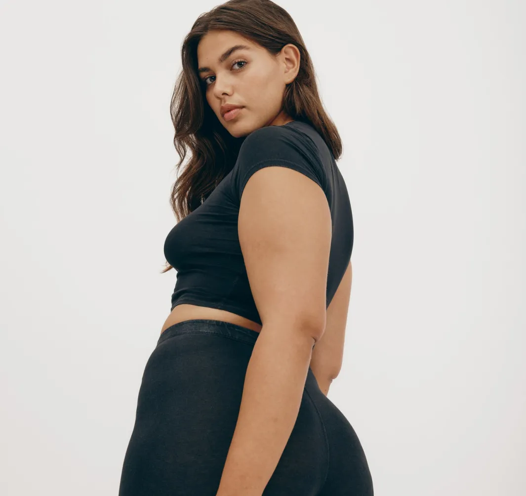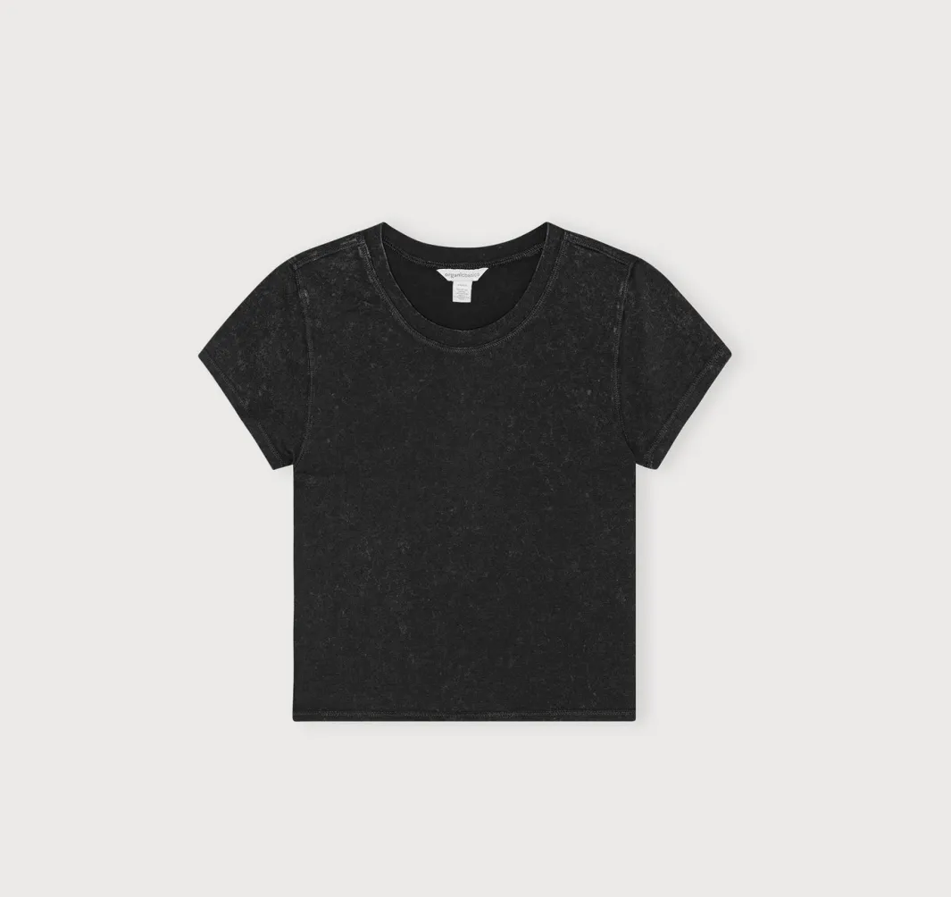 Stretch, baby! This soft, form-fitting tee made with organic cotton features short sleeves and a baby tee fit.