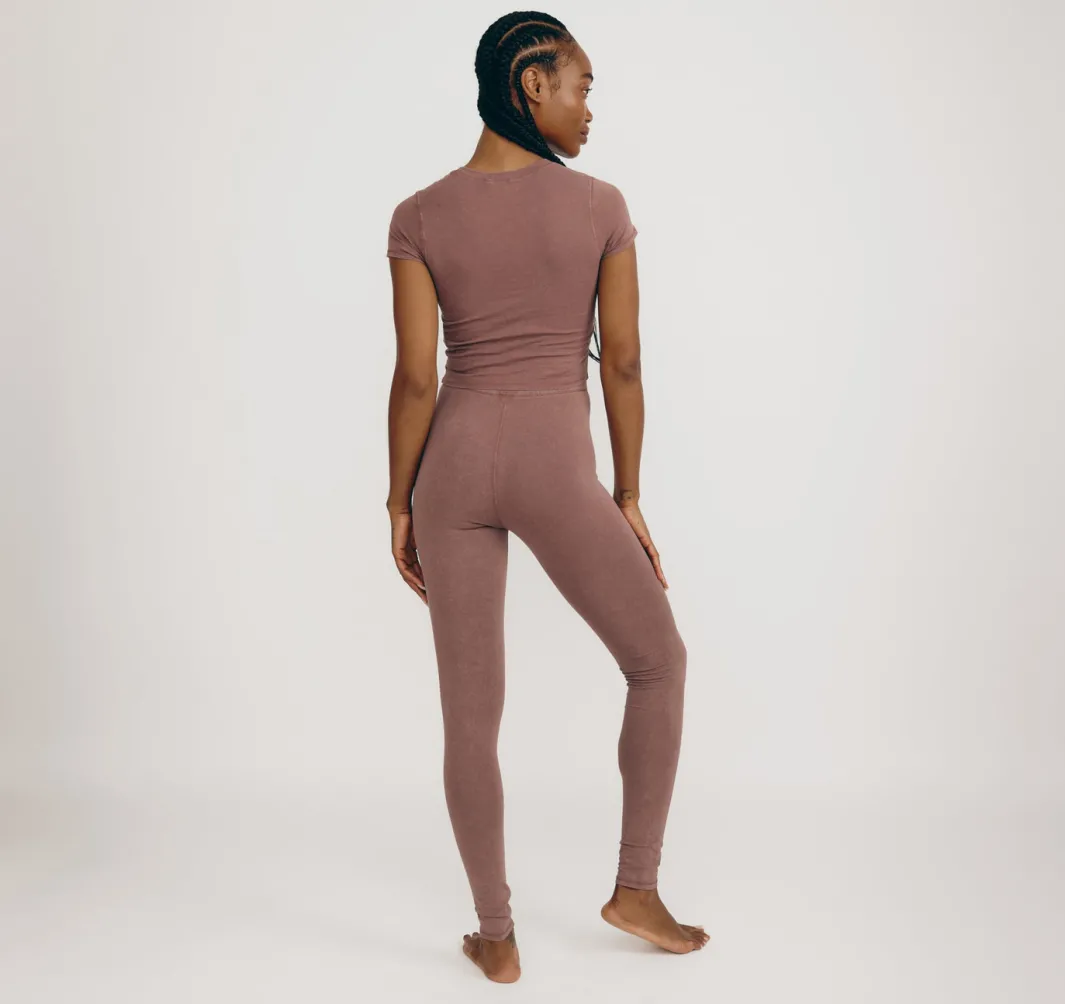 Ultra-soft and comfortable leggings that feature a flattering high-waist fit and ankle-grazing length. Made with smooth and stretchy organic cotton.