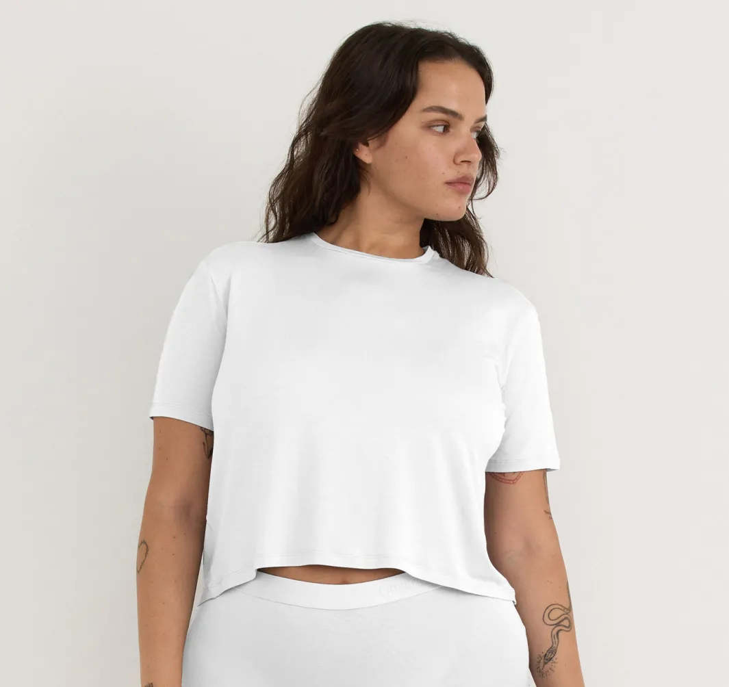 Soft Touch Boxy TeeSlightly cropped and boxy crewneck tee made with soft and sustainable TENCEL™ Lyocell fibers.