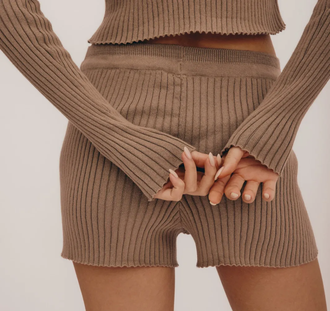 Cute and comfy rib knit shorts made with GOTS-certified organic cotton. Perfect to snuggle up in all through cozy season, but lightweight and breathable enough to wear with a tee in warmer weather.
