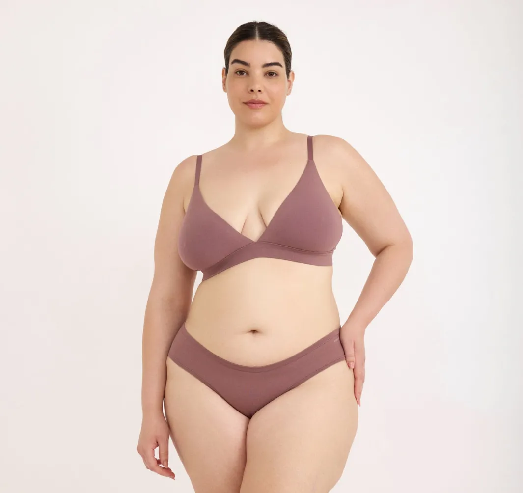 A buttery-soft triangle bra with a plunging front, perfect under any neckline. Made with ultra-smooth, breathable organic cotton, it has zero wires – but plenty of support.