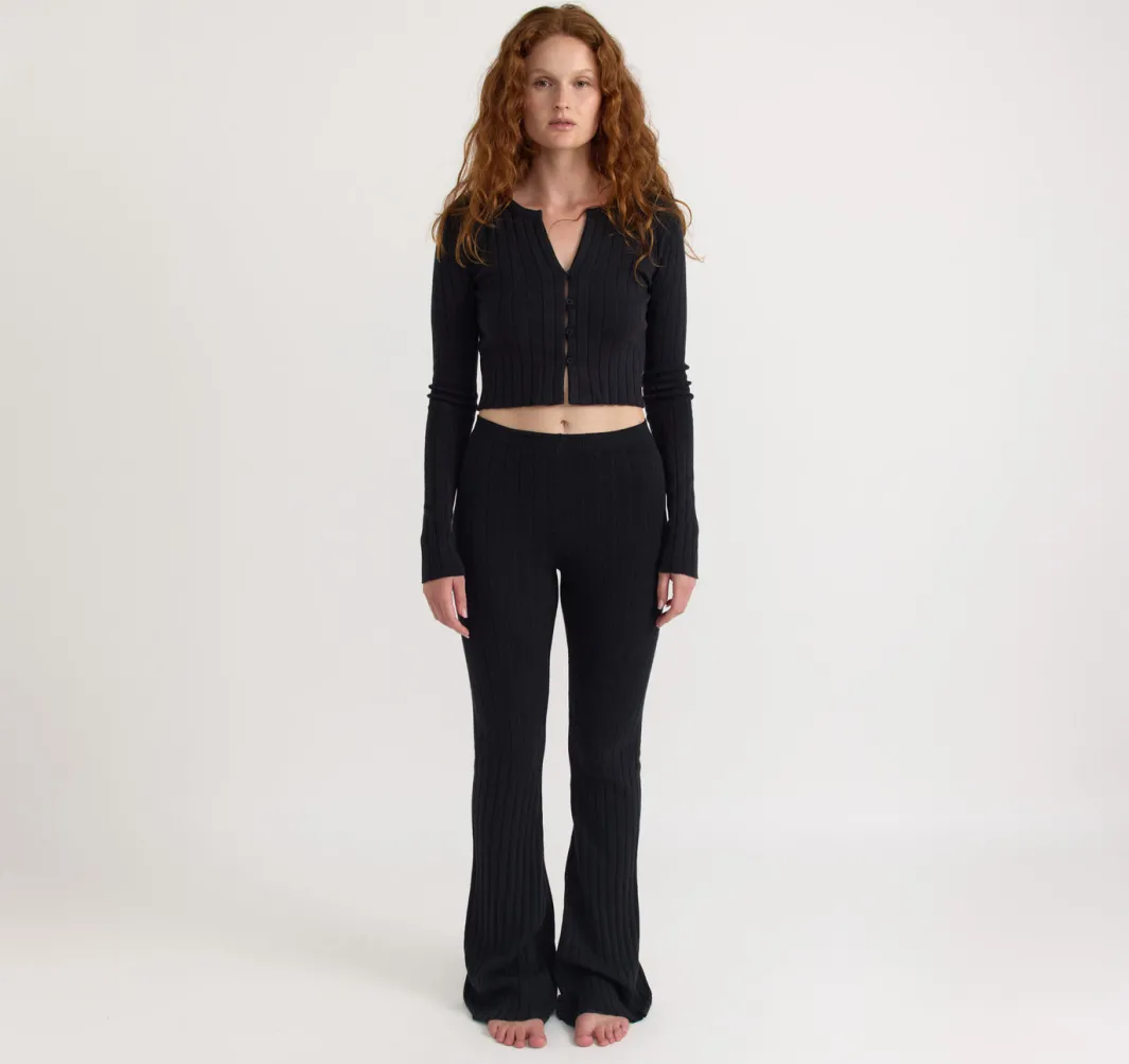 Soft Knit Rib High-Rise Flare Pants70’s inspired flare pants made with organic cotton and recycled nylon for a buttery-s…