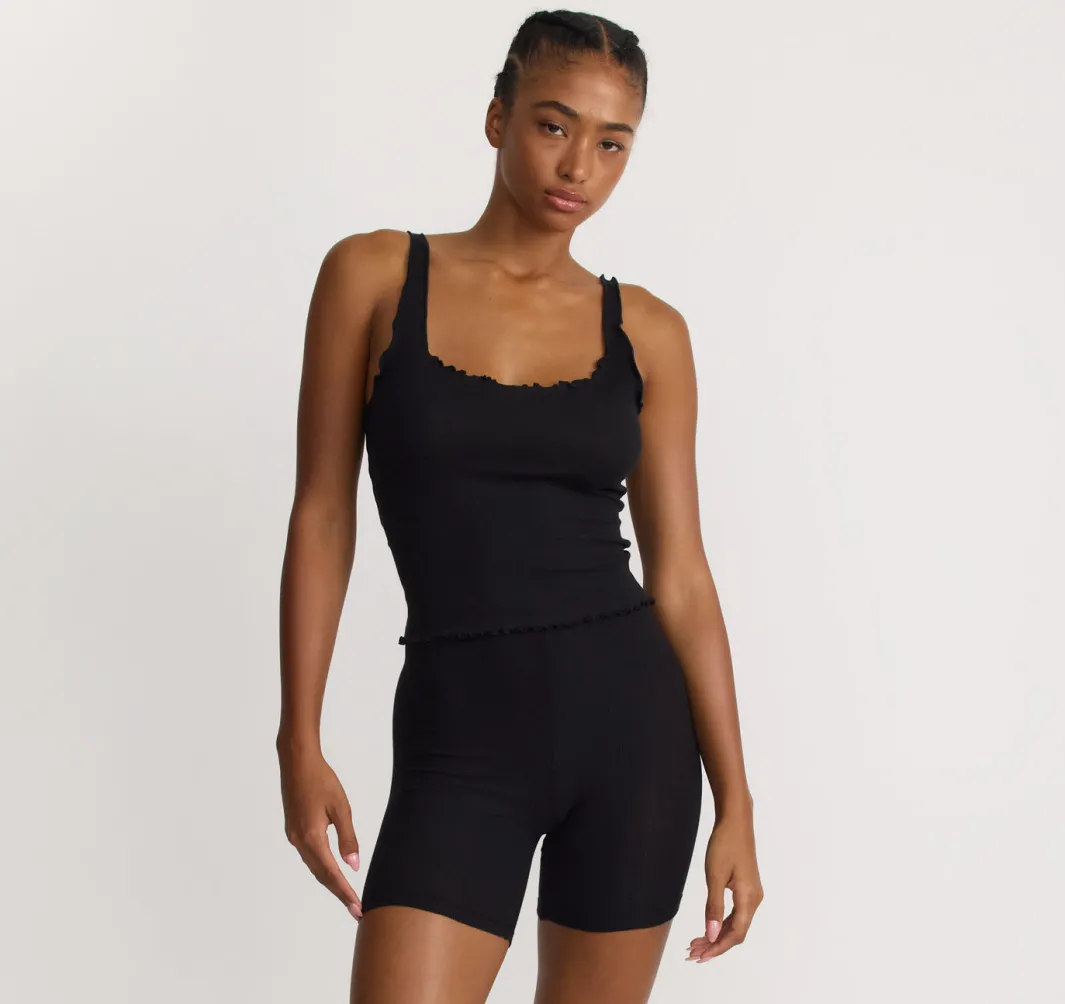 Ready for a little romance? Upgrade your date night looks with this oh-so comfy tank top. Features curled edges and a cropped fit for the perfect mix of casual and cute.