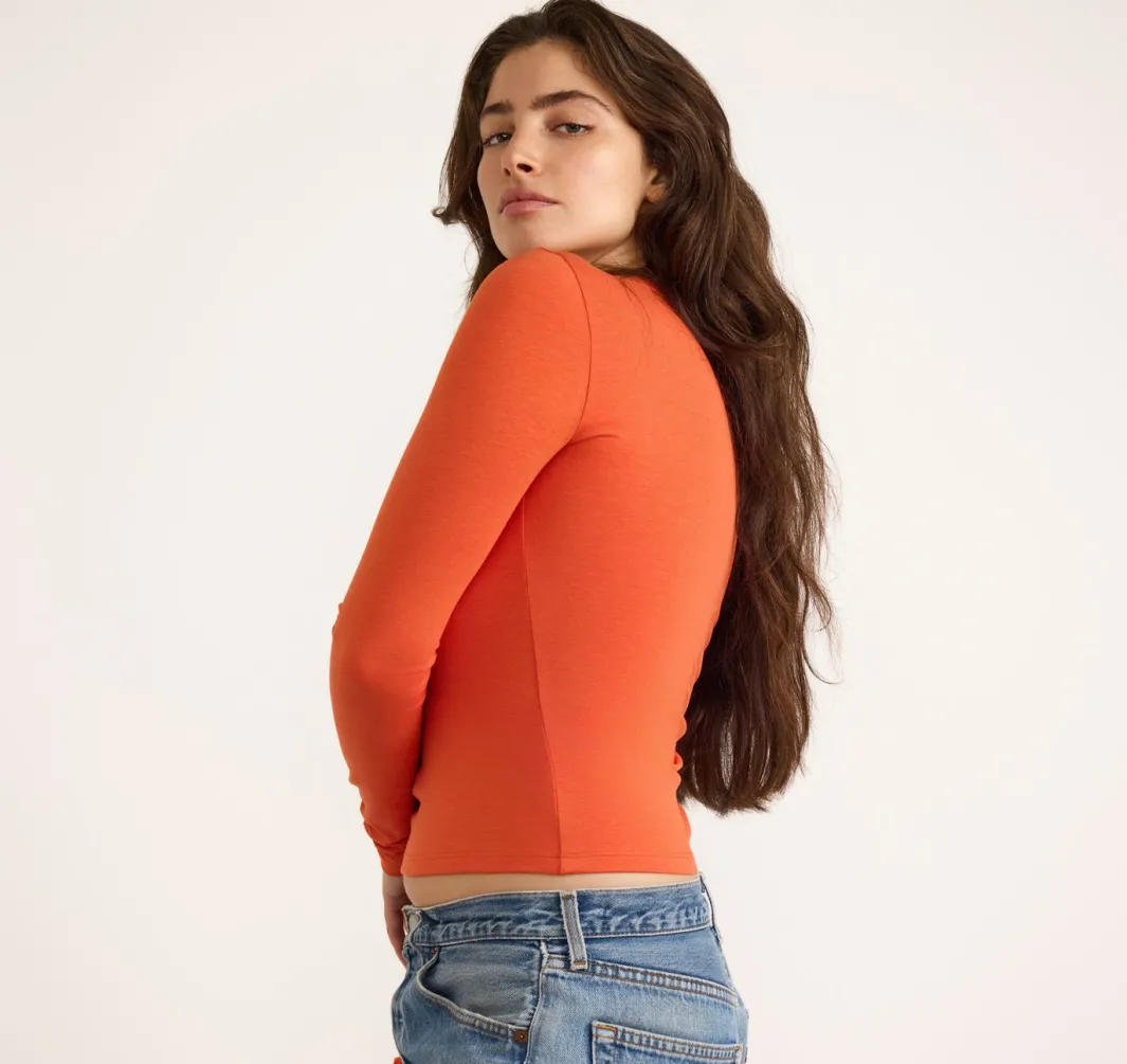 A staple for any sustainable wardrobe, this lightweight long sleeve tee is a classic for a reason. Features a scoop neckline and cuts at hip-length for an effortless 90’s feel.