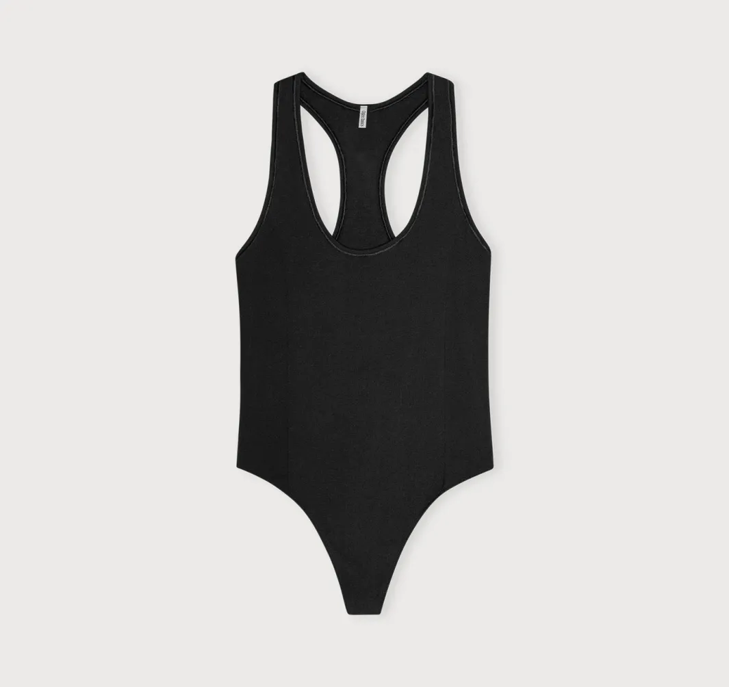 With a scoop neckline and racer back, this soft and plush bodysuit hugs your body just right. Made with a sustainable viscose blend, this thick and stretchy fabric takes lounging to the next level.