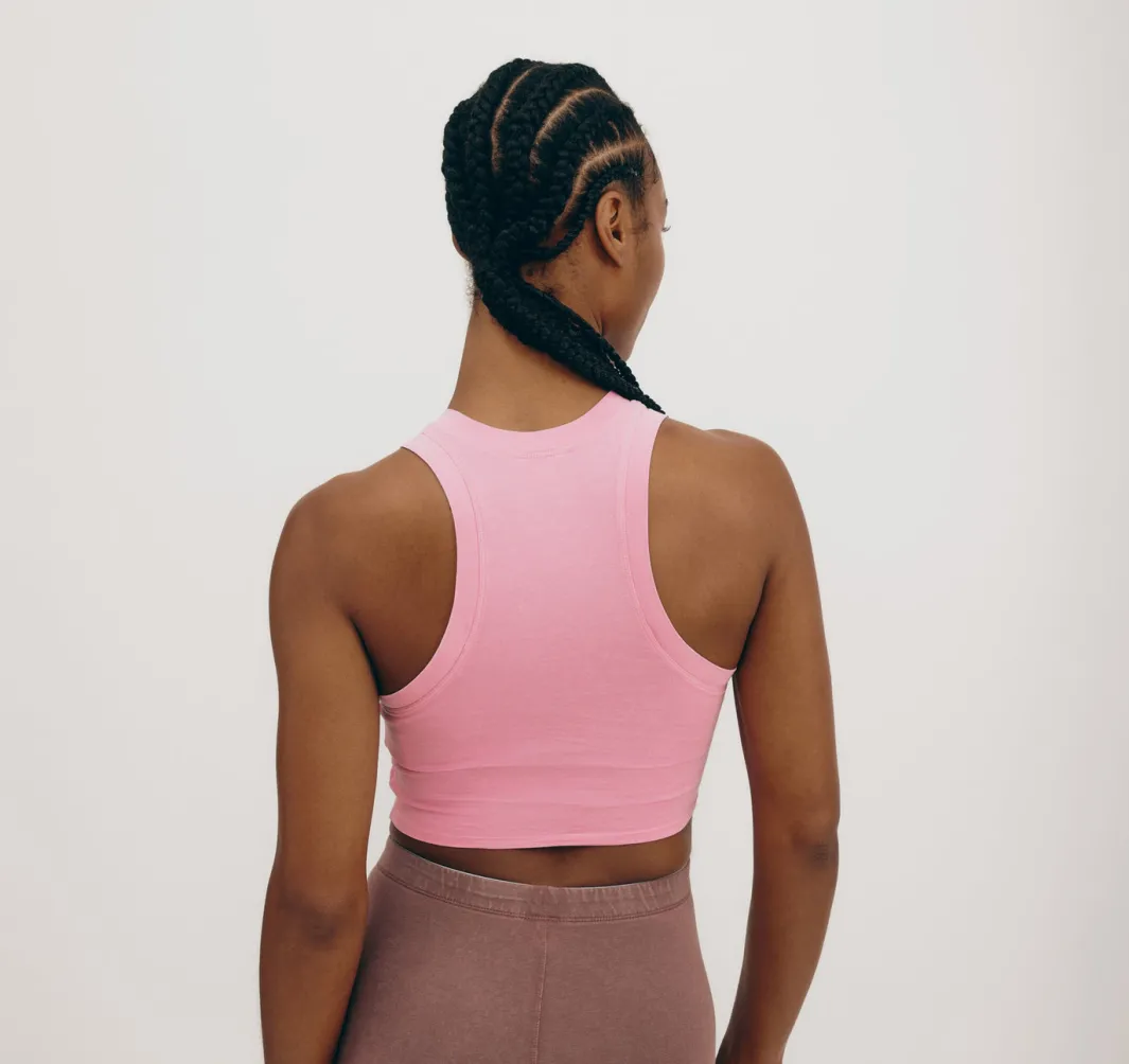Soft, stretchy, and super comfortable – this racer-back crop top has a flattering, fitted cut that hugs you in all the right ways.
