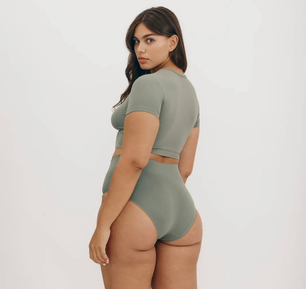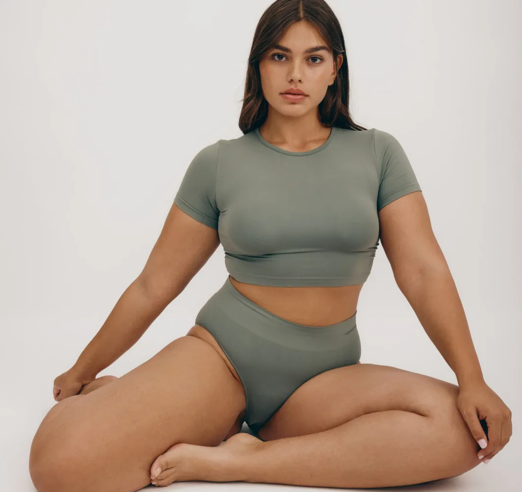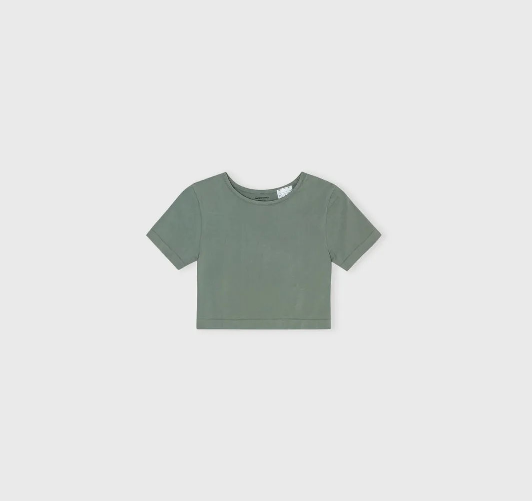 Sleek and seamless, this super-cropped tee has a soft and comfortable fit to take you from lounging and beyond. Made with a scoop neckline in a smooth recycled material.