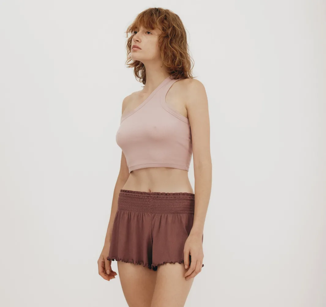 An asymmetrical crop top that’ll update your wardrobe instantly. Made with organic cotton in a soft rib material.