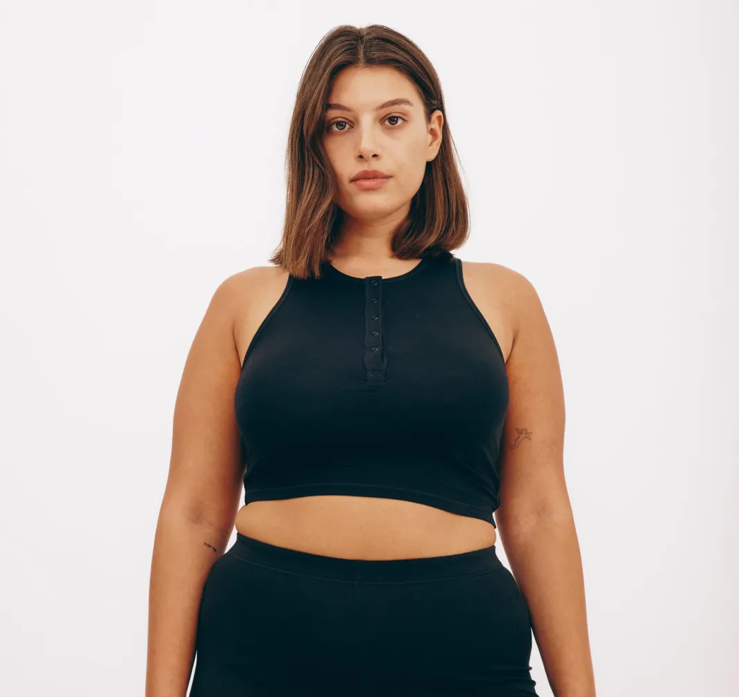 An ultra-soft and lightweight henley tank top that hugs you just right. This flattering staple features snap buttons at the neckline and a cropped length that hits at waist-length.