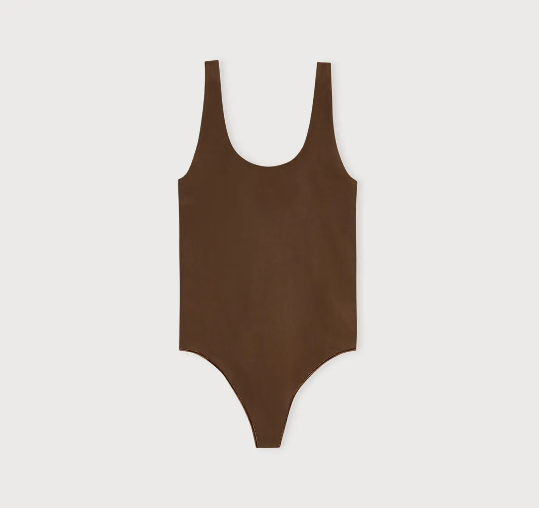 Seamless, supportive, and supremely soft, this curve-hugging scoop-neck bodysuit is a sustainable staple that you’ll keep reaching for. Made with recycled materials with a thong bottom for a smooth fit under clothing.