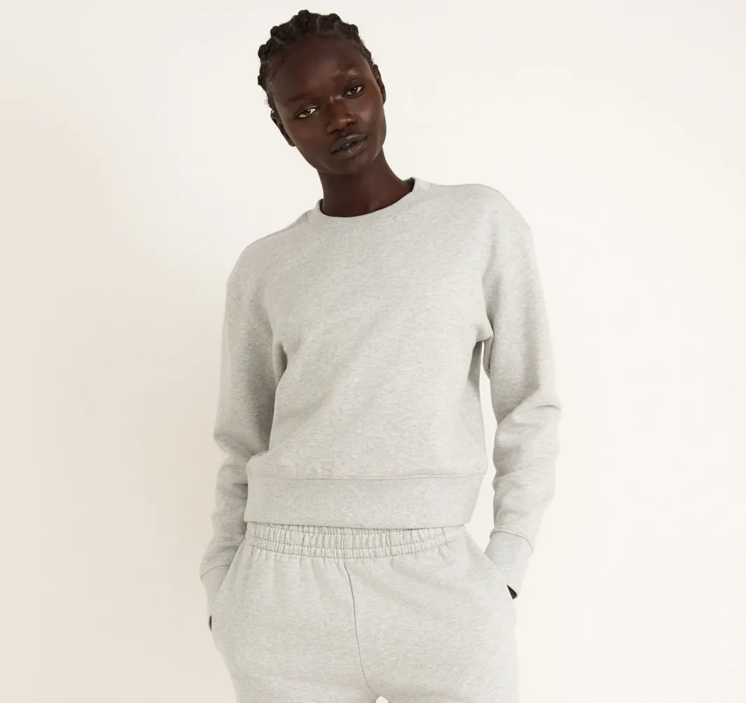 Stay warm while looking cool in this organic cotton crewneck sweatshirt.