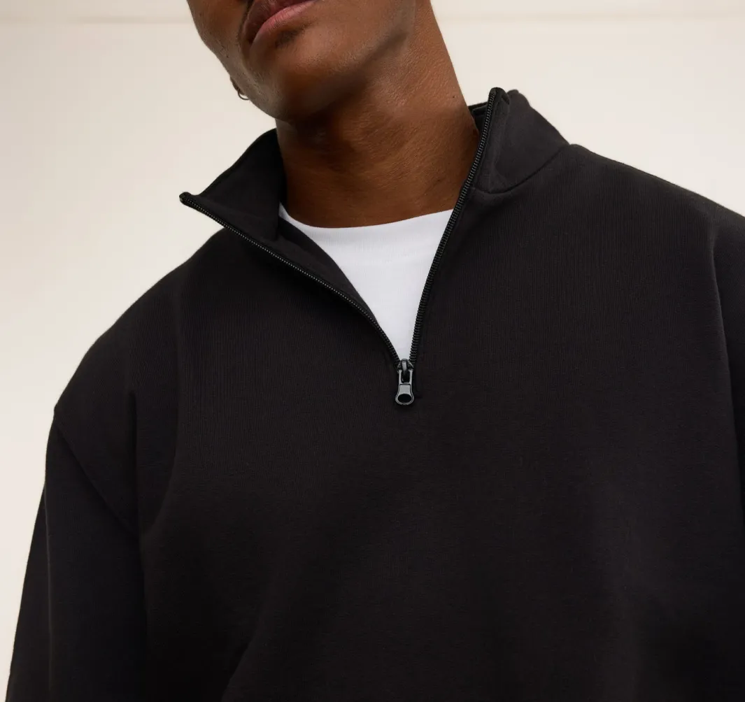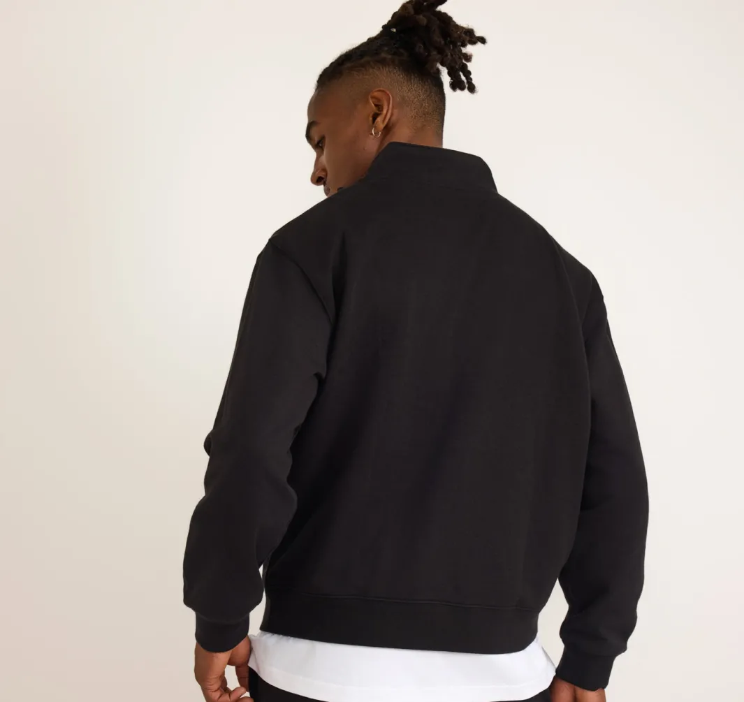 Zip up and cozy down! This organic cotton zip-up sweatshirt is sure to make your Sunday blues a bit brighter. Features a mock neck and slightly dropped shoulders for maximum comfort.