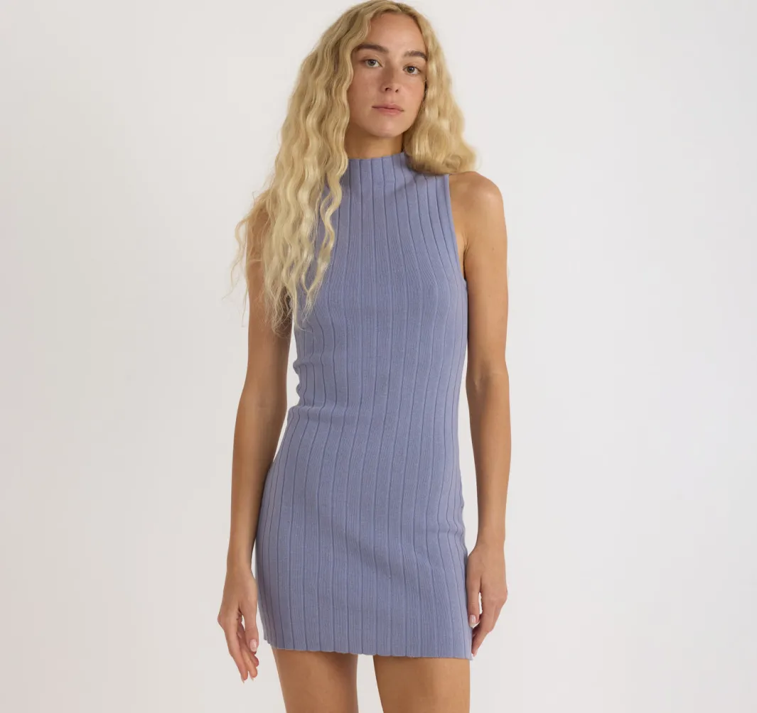 Soft Knit Rib Mock Neck DressThe search for the ultimate mini dress is over! Features a mock neck and curled edges makin…