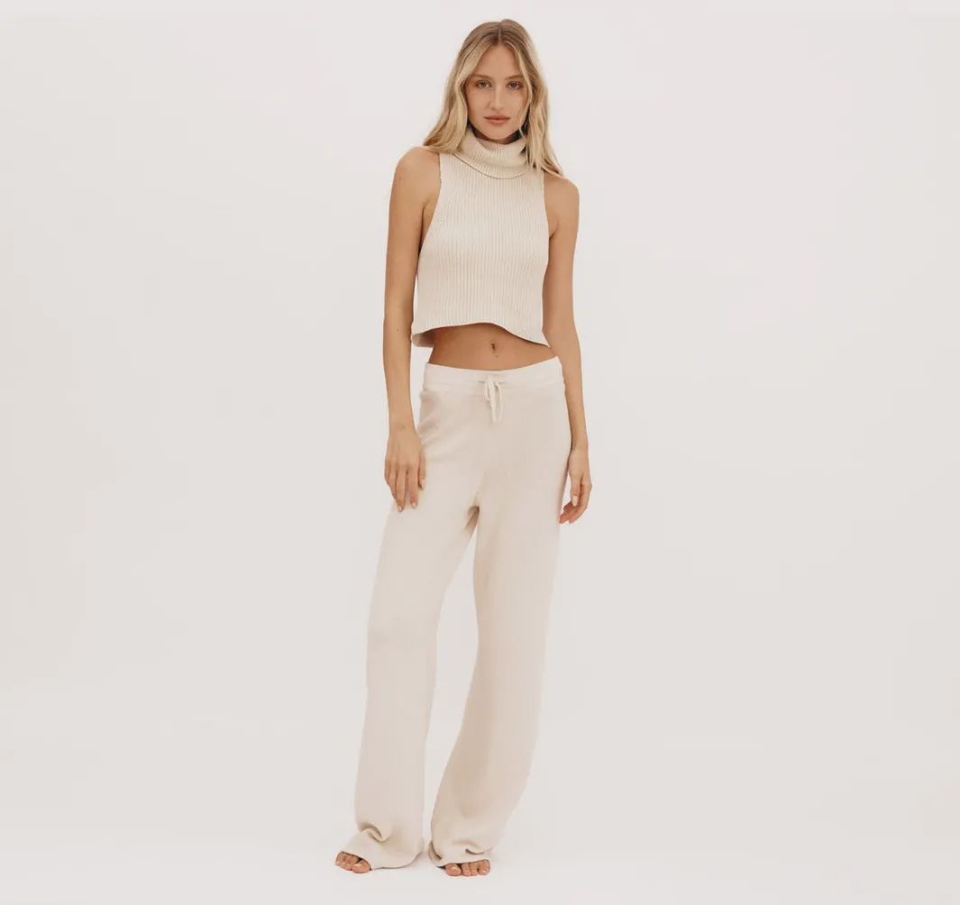 These ultra-soft knitted pants will keep you comfy all through cozy season. Features a wide leg design and tie drawstring to give you a bit of customization. Made with GOTS-certified organic cotton.
