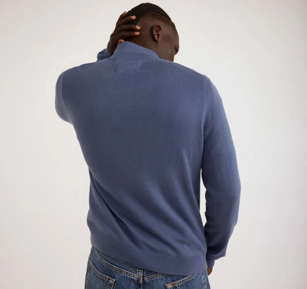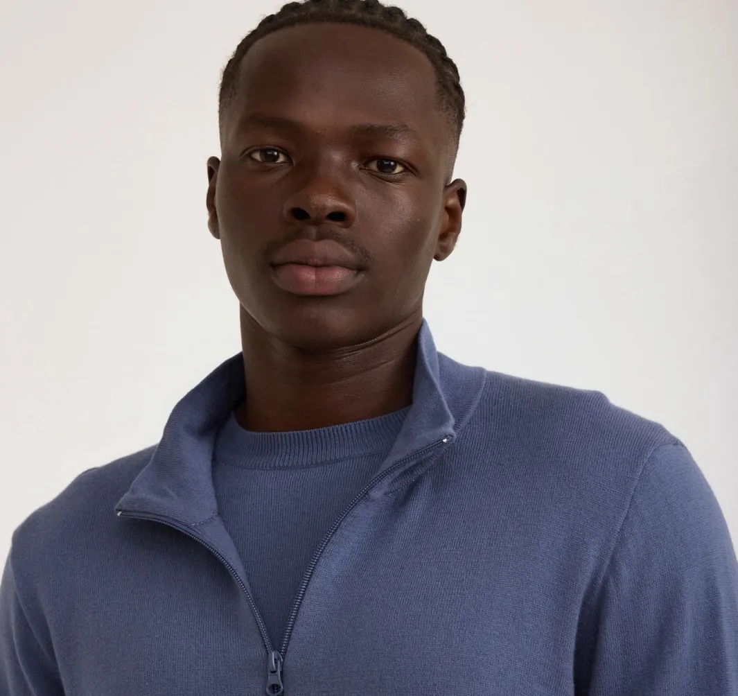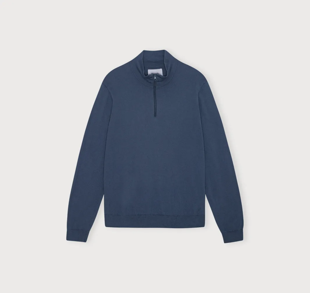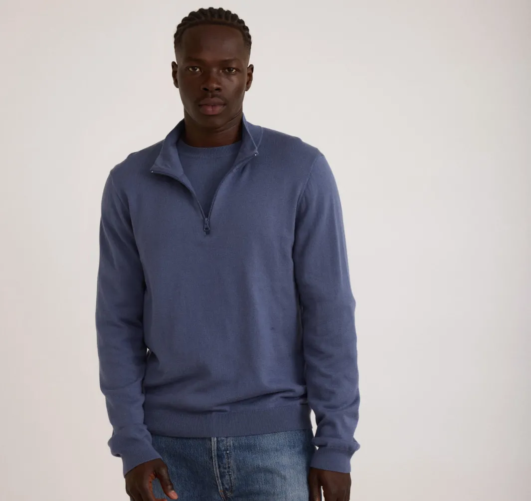 Staying warm has never looked this cool! Made with organic cotton and recycled nylon this half zip sweater will be the perfect addition to any outfit no matter the weather.