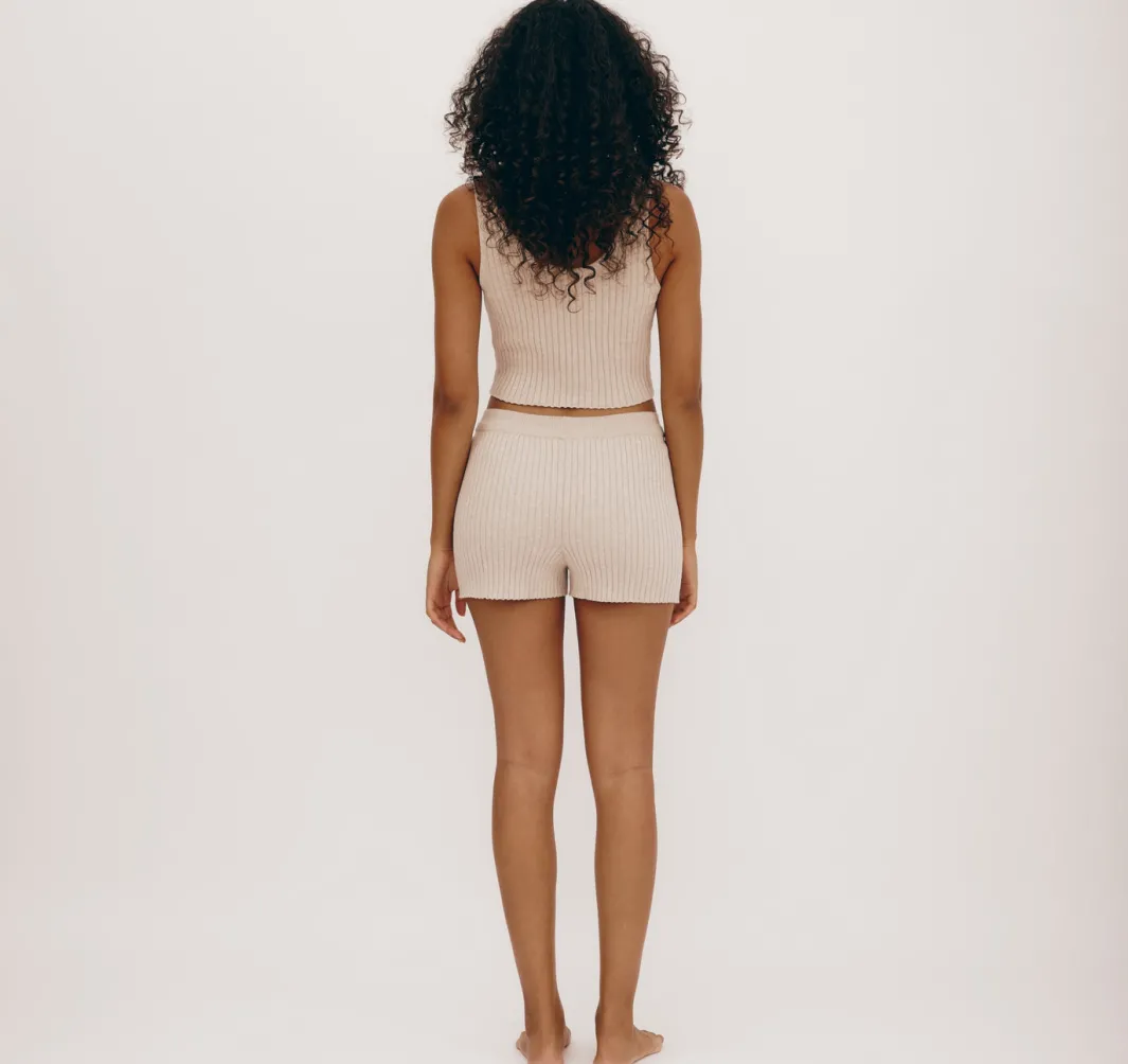 Cute and comfy rib knit shorts made with GOTS-certified organic cotton. Perfect to snuggle up in all through cozy season, but lightweight and breathable enough to wear with a tee in warmer weather.