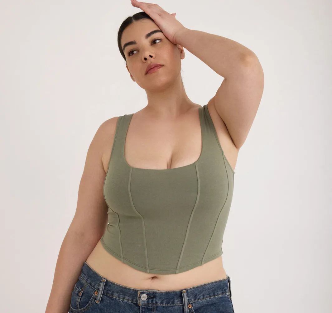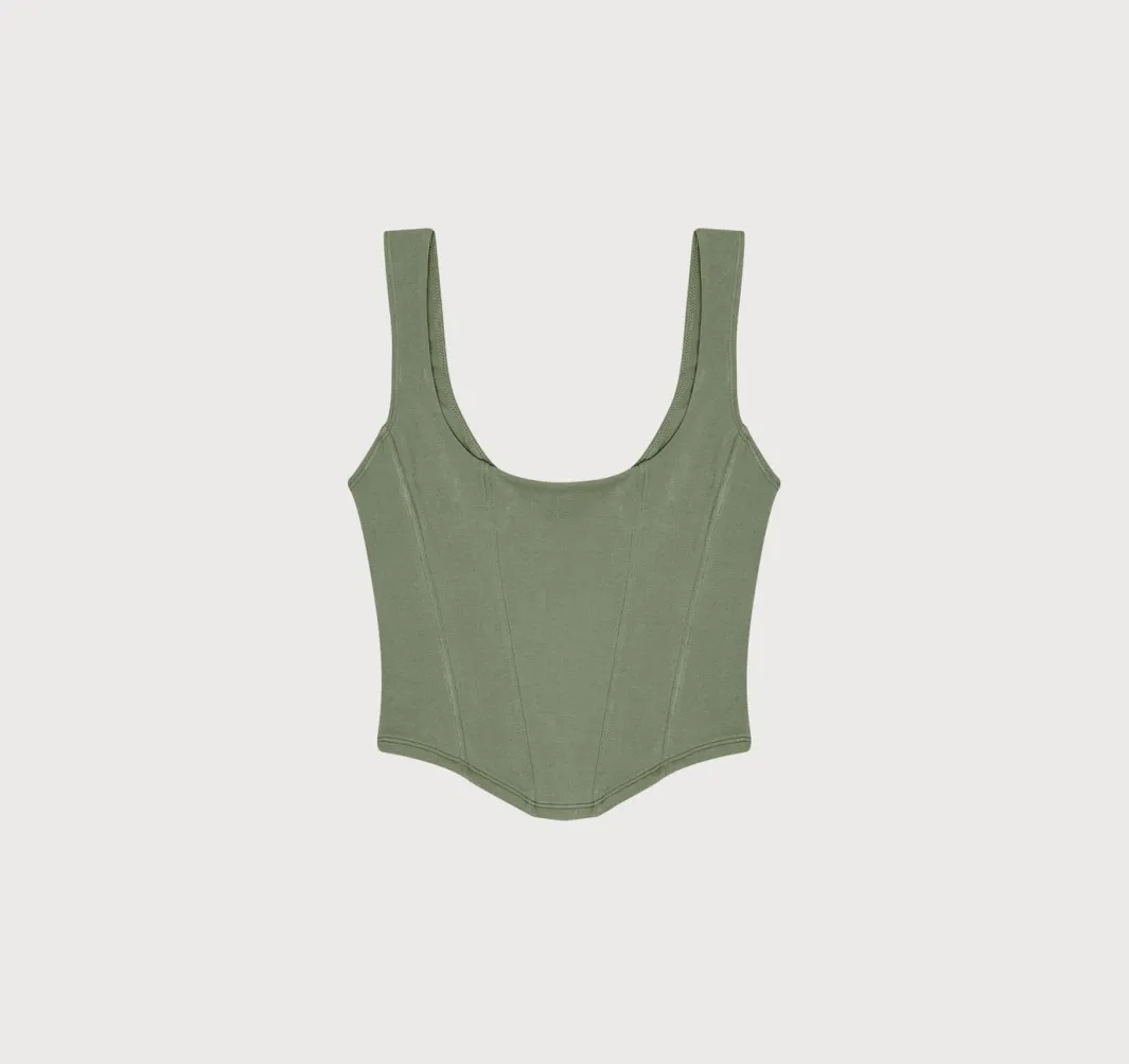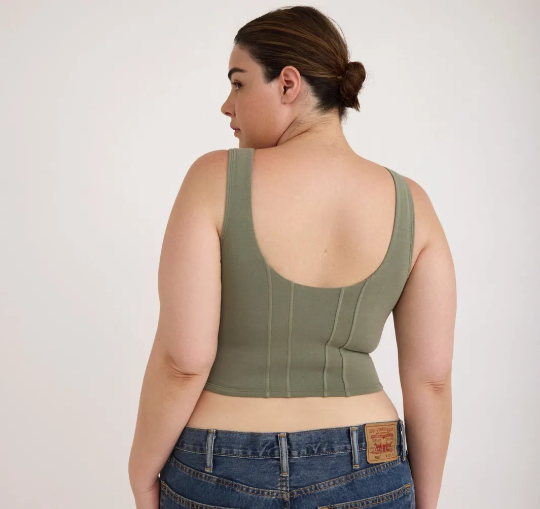 Made to flatter, this soft and stretchy corset top is made with our Flex Cotton fabric for a flexible fit that molds to your body. Features a scooped neckline and panels that mimic those of a corset, giving a slight lift and support while still providing ultimate comfort.