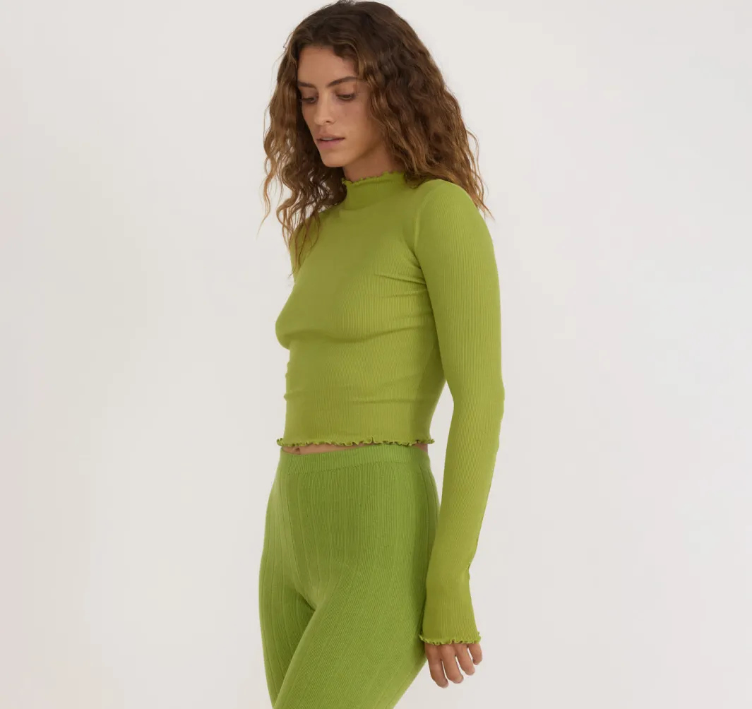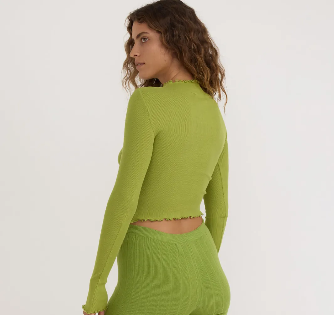 A long sleeve mock neck tee perfect for cozy nights in – and nights out as well. Made with GOTS-certified organic cotton to keep you comfortable no matter your plans.