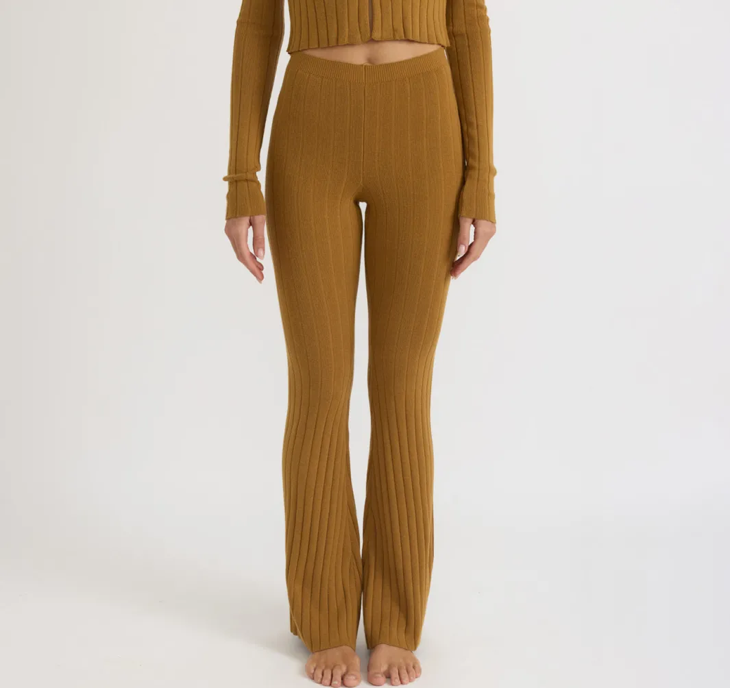 Soft Knit Rib High-Rise Flare Pants70’s inspired flare pants made with organic cotton and recycled nylon for a buttery-s…