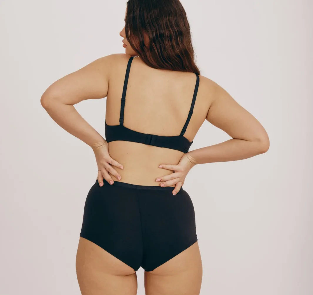 The search for a sustainable bra is over. Support meets comfort in this unlined wire bra made with buttery-soft organic cotton. Made to enhance a natural-looking cleavage while still being comfortable for everyday wear. Features adjustable straps that can be customized to be worn straight or crossed, and hook-an-eye closure in the back.