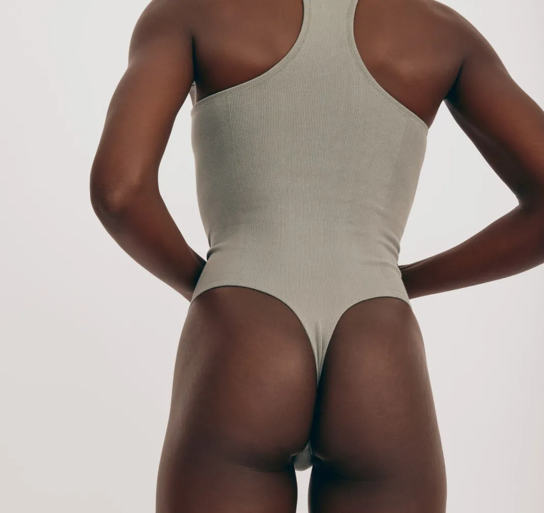 With a scoop neckline and racer back, this soft and plush bodysuit hugs your body just right. Made with a sustainable viscose blend, this thick and stretchy fabric takes lounging to the next level.