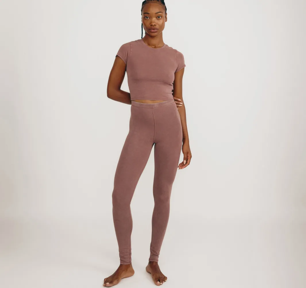Ultra-soft and comfortable leggings that feature a flattering high-waist fit and ankle-grazing length. Made with smooth and stretchy organic cotton.