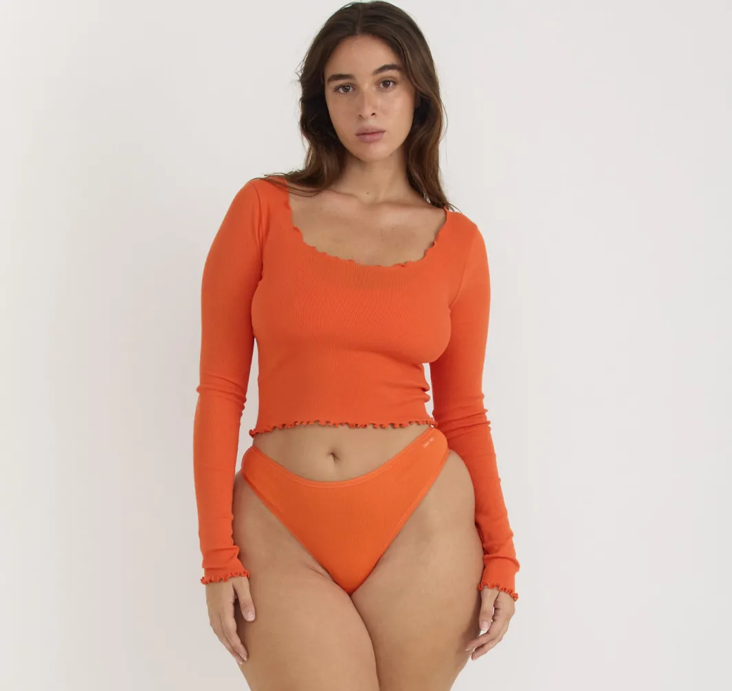 Upgrade your wardrobe with this long sleeve tee made with GOTS-certified organic cotton. Features curled hems and a neckline that is sure to spice up any outfit.