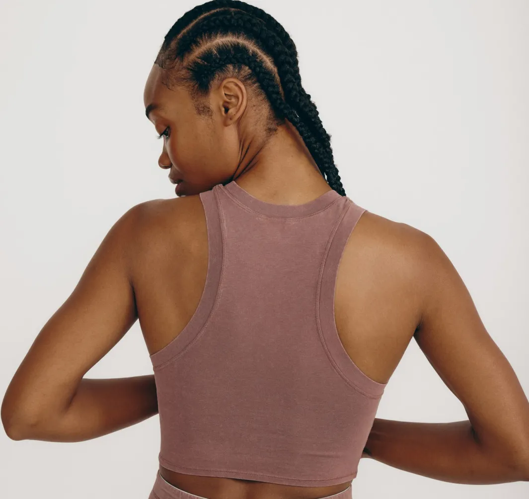 Soft, stretchy, and super comfortable – this racer-back crop top has a flattering, fitted cut that hugs you in all the right ways.