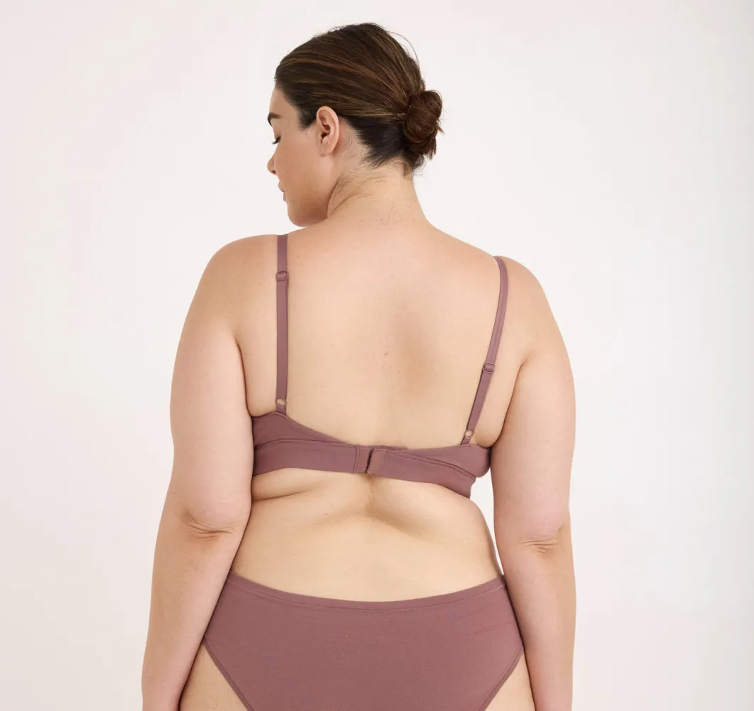 A buttery-soft triangle bra with a plunging front, perfect under any neckline. Made with ultra-smooth, breathable organic cotton, it has zero wires – but plenty of support.