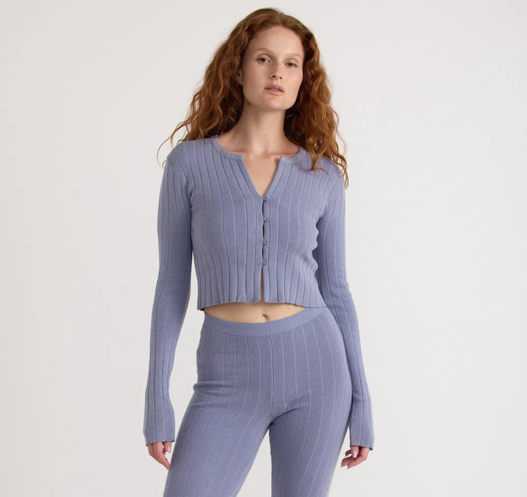 Soft Knit Rib Crop CardiganA cropped slim-fit cardigan that will upgrade your wardrobe instantly. Made with organic cott…