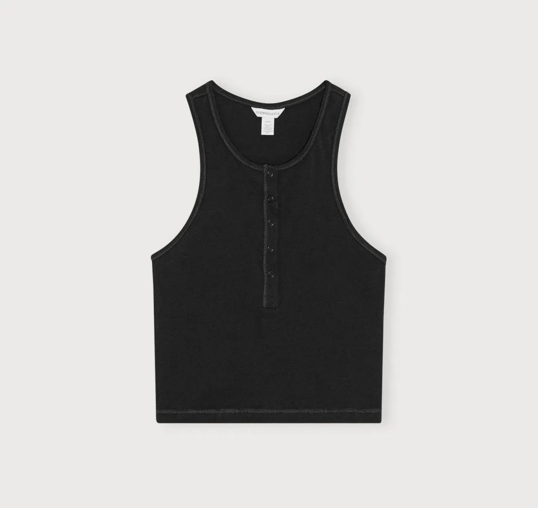An ultra-soft and lightweight henley tank top that hugs you just right. This flattering staple features snap buttons at the neckline and a cropped length that hits at waist-length.