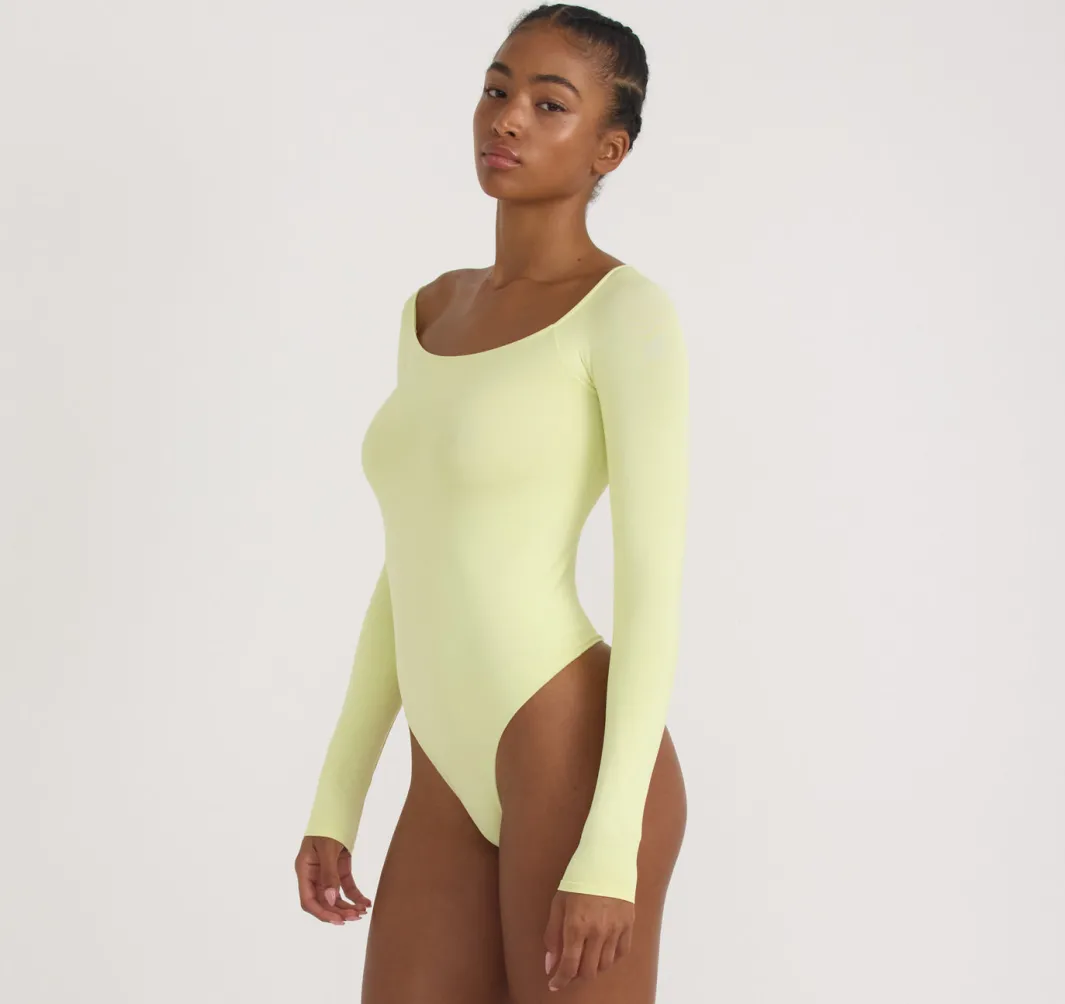 Upgrade your wardrobe with this ultra-flattering off-shoulder bodysuit. Made with recycled nylon for a fabric that is as durable as it is smooth.
