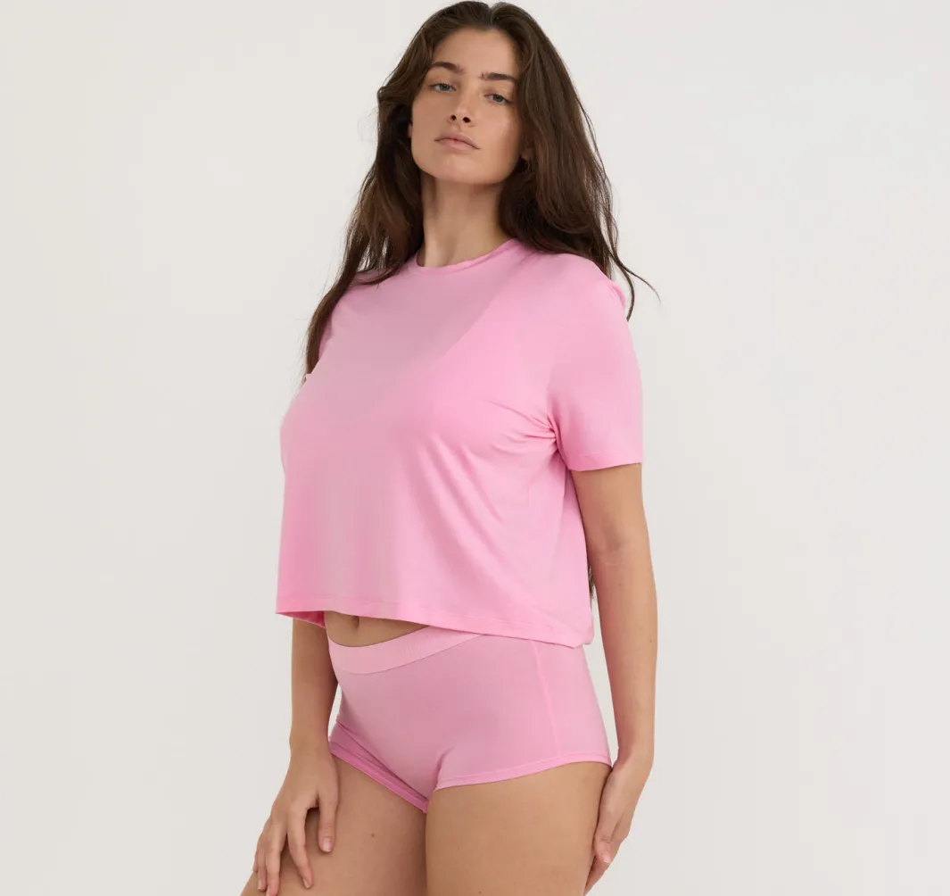 Ultra-flattering mid-rise boy short made with TENCEL™ Lyocell fibers for a buttery-soft feel. Perfect for lounging or as a comfy layer under clothing.
