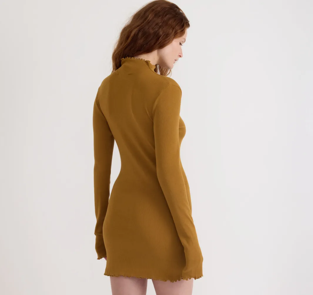 Core Rib Mock Neck Long Sleeve DressElevate your wardrobe with this long sleeve dress featuring a mock neck and curled h…