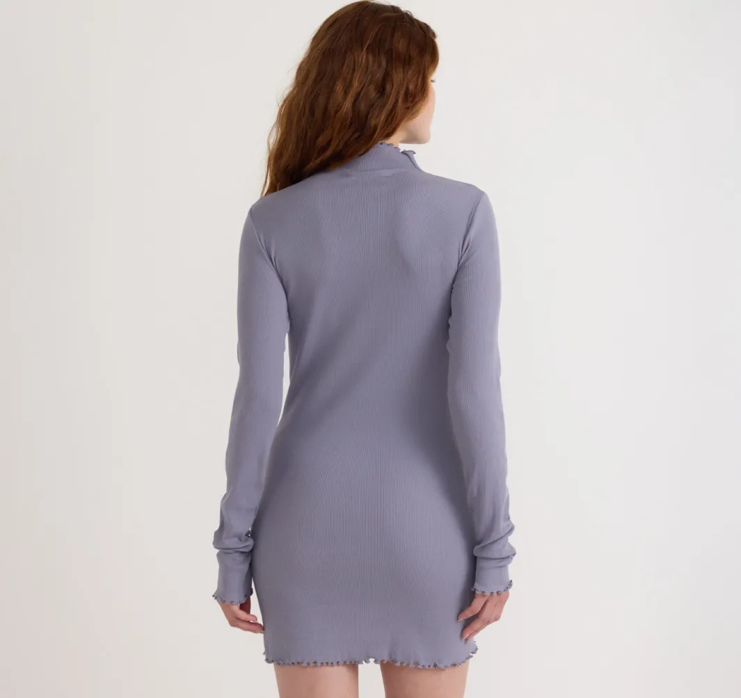 Core Rib Mock Neck Long Sleeve DressElevate your wardrobe with this long sleeve dress featuring a mock neck and curled h…