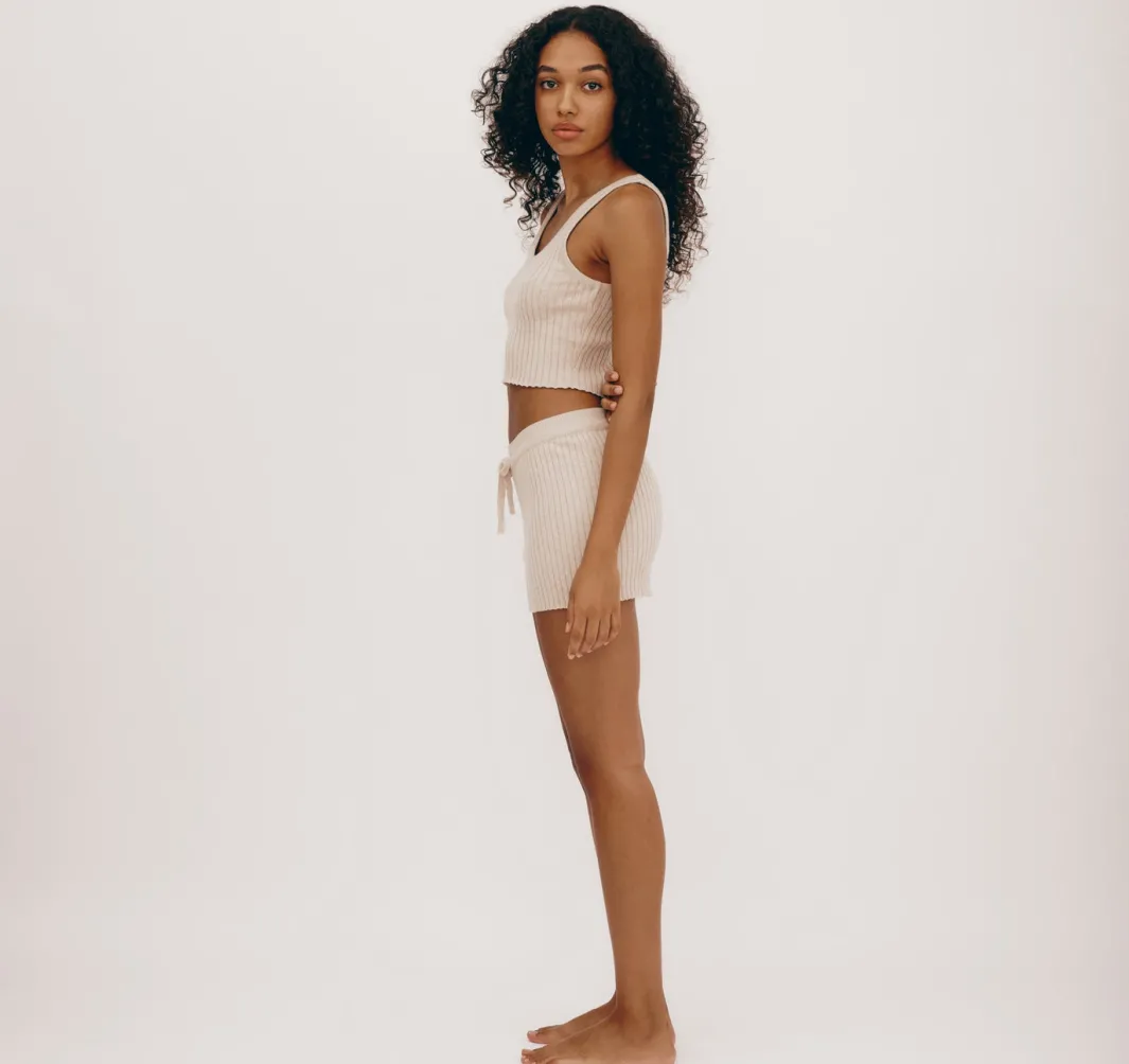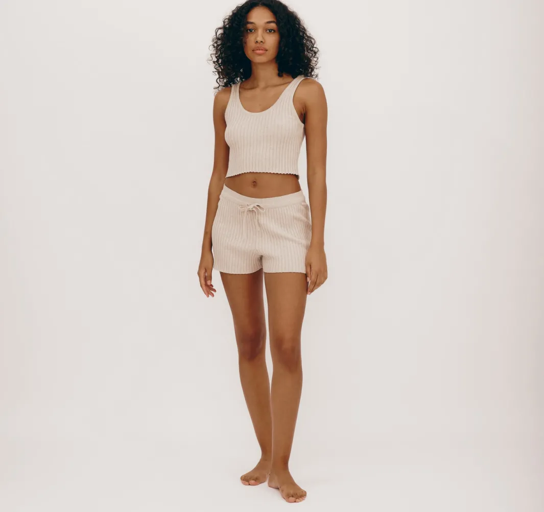 Cute and comfy rib knit shorts made with GOTS-certified organic cotton. Perfect to snuggle up in all through cozy season, but lightweight and breathable enough to wear with a tee in warmer weather.